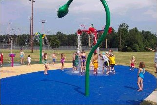 Each water spray park has 12 "stations" in a total area slightly larger than